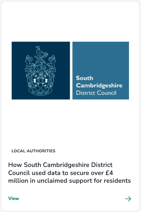 Using this approach, we supported South Cambridgeshire District Council to identify around 1,500 eligible households most likely to be affected by rising oil prices, enabling targeted outreach as funding is released.