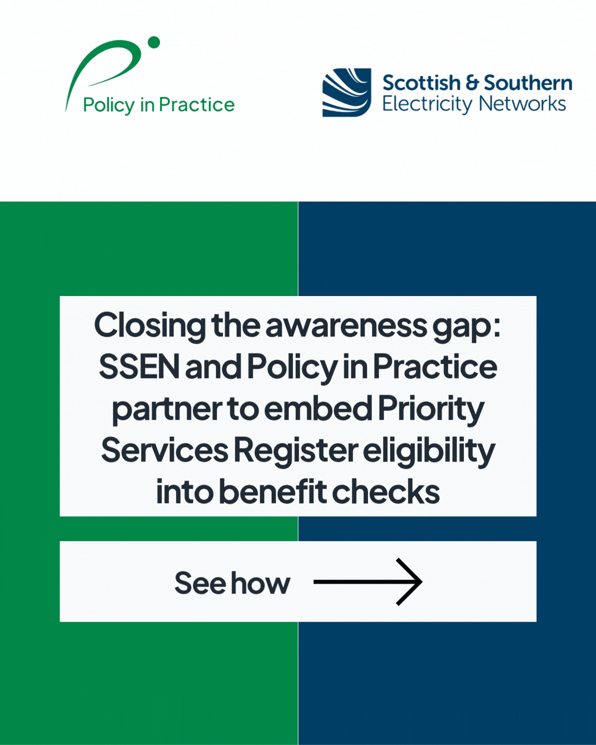 This month Scottish and Southern Electricity Networks (SSEN) has partnered with Policy in Practice to help identify and protect vulnerable households during power cuts by embedding Priority Services Register (PSR) eligibility directly into benefit checks.