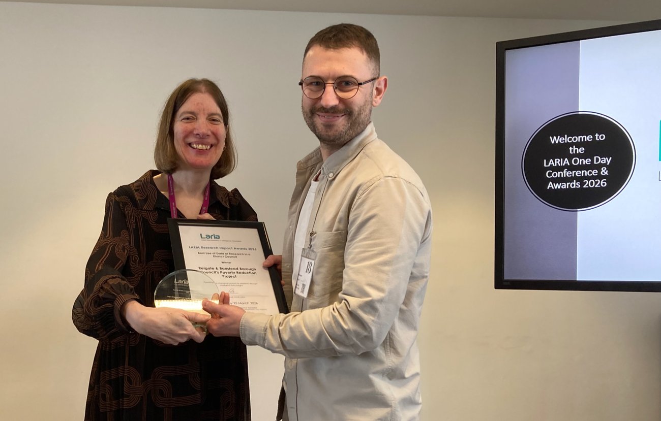 We're delighted that Reigate and Banstead Borough Council won Best use of data or research in a district council at the LARIA Research Impact Awards 2026, for powering life changing support for residents through intelligent data insight.